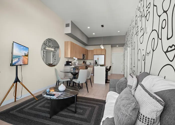 To enjoy your vacation in Miami, stay at the 1-room Luxury & Modern Condo In Design District With Pool Miami, which is 3.5 km from the two-story open air shopping center "Bayside Marketplace" and a mere 11 minutes on foot from La Victoria. Wi-Fi is provided for both business and leisure activities.